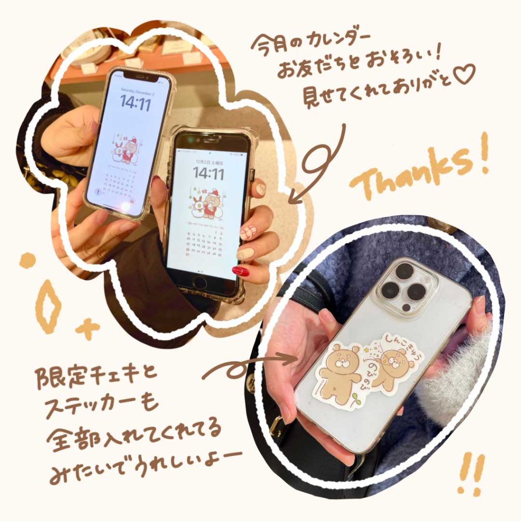 毎月公式ラインから配布している待ち受けカレンダー友達とお揃いで見せてくださったりと